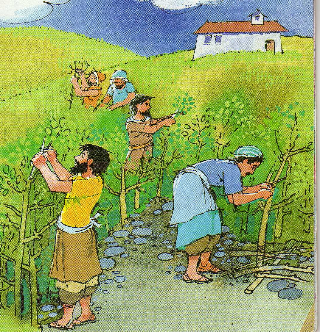 Toen Jezus leefde, waren er veel wijngaarden in Palestina. Men plantte de wijnstokken in rijen en leidde de takken langs stokken. Bij elke wijngaard stond een uitkijktoren. Rond de wijngaard was een muur om roofdieren en dieven buiten te houden. Rijke boeren huurden arbeiders om met de oogst te helpen.