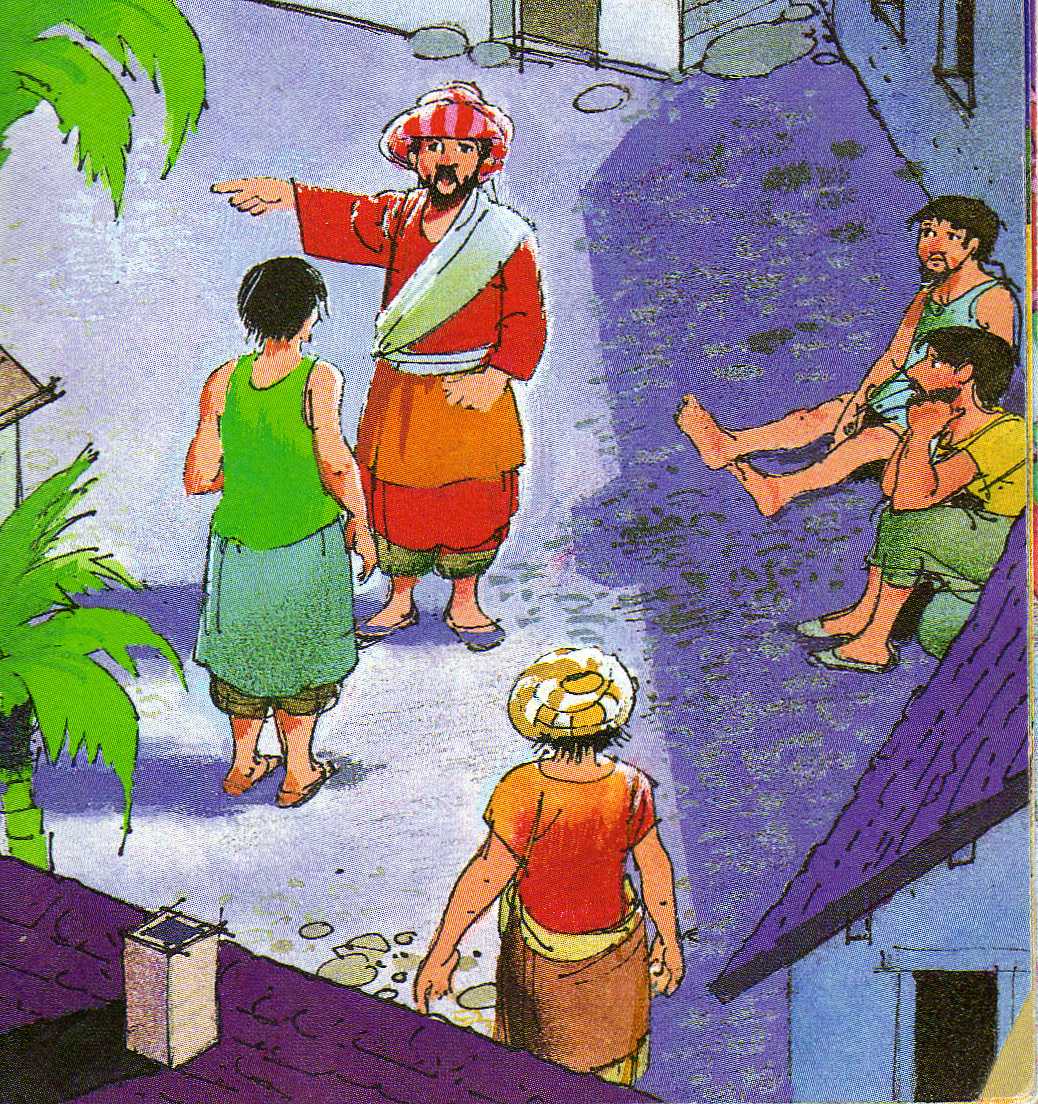 Later die ochtend gaat de eigenaar van de wijngaard weer op weg. Hij ziet mannen op straat die nog geen werk hebben. Hij zegt tegen hen: ‘Ga maar in mijn wijngaard werken. Ik zal jullie een eerlijk loon geven.’ De mannen gaan aan het werk.