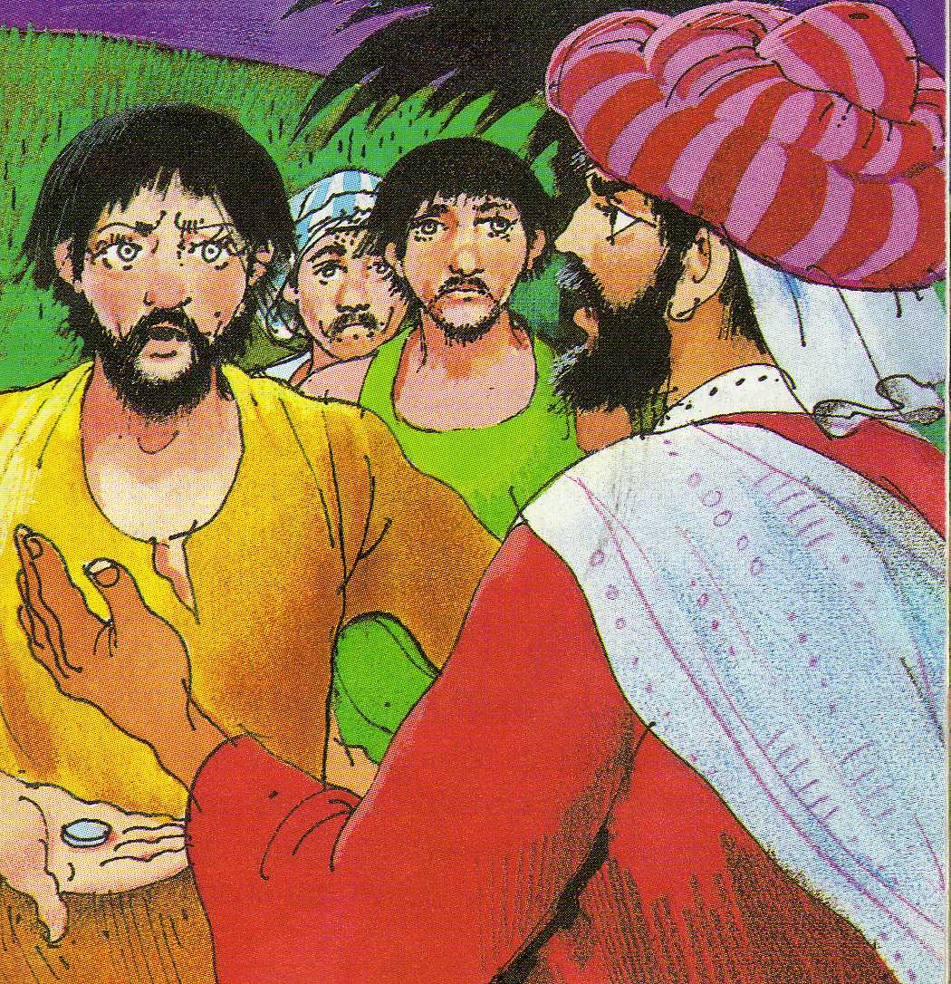 Deze zilveren munt (ongeveer 2, 4 gram) werd tijdens de Romeinse overheersing in Palestina ingevoerd. Op dit Romeinse geldstuk stond de afbeelding van de keizer. Met die Romeinse munt moesten de joden belastingen betalen aan de Romeinse bezetter.